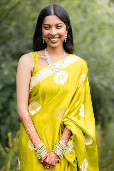 Janani and Alex’s two-day celebration in Metro Detroit was a beautiful affair. The festivities began with Haldi and Mehendi, where family and friends gathered to honor their union. On the second day, the atrium of the Westin Southfield, decorated with greenery and framed by a soaring glass wall, provided a stunning setting for their wedding ceremony. The celebration continued in the Westin ballroom, where the evening unfolded with dinner and dancing.
